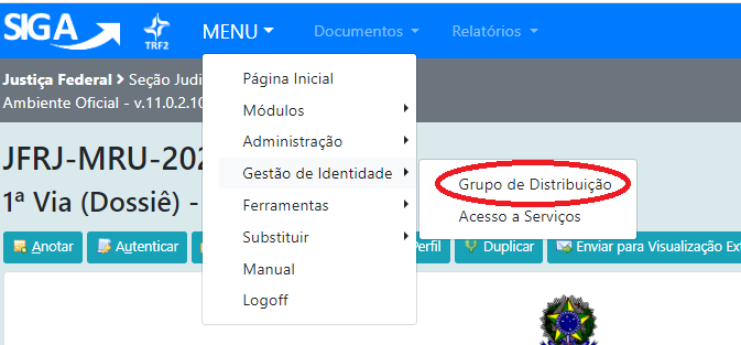 2.1 - Para criar um grupo de distribuição, é necessária a abertura de chamado para a STI para criação do grupo desejado e liberação da funcionalidade que permite a edição dos grupos de distribuição criados para a lotação.